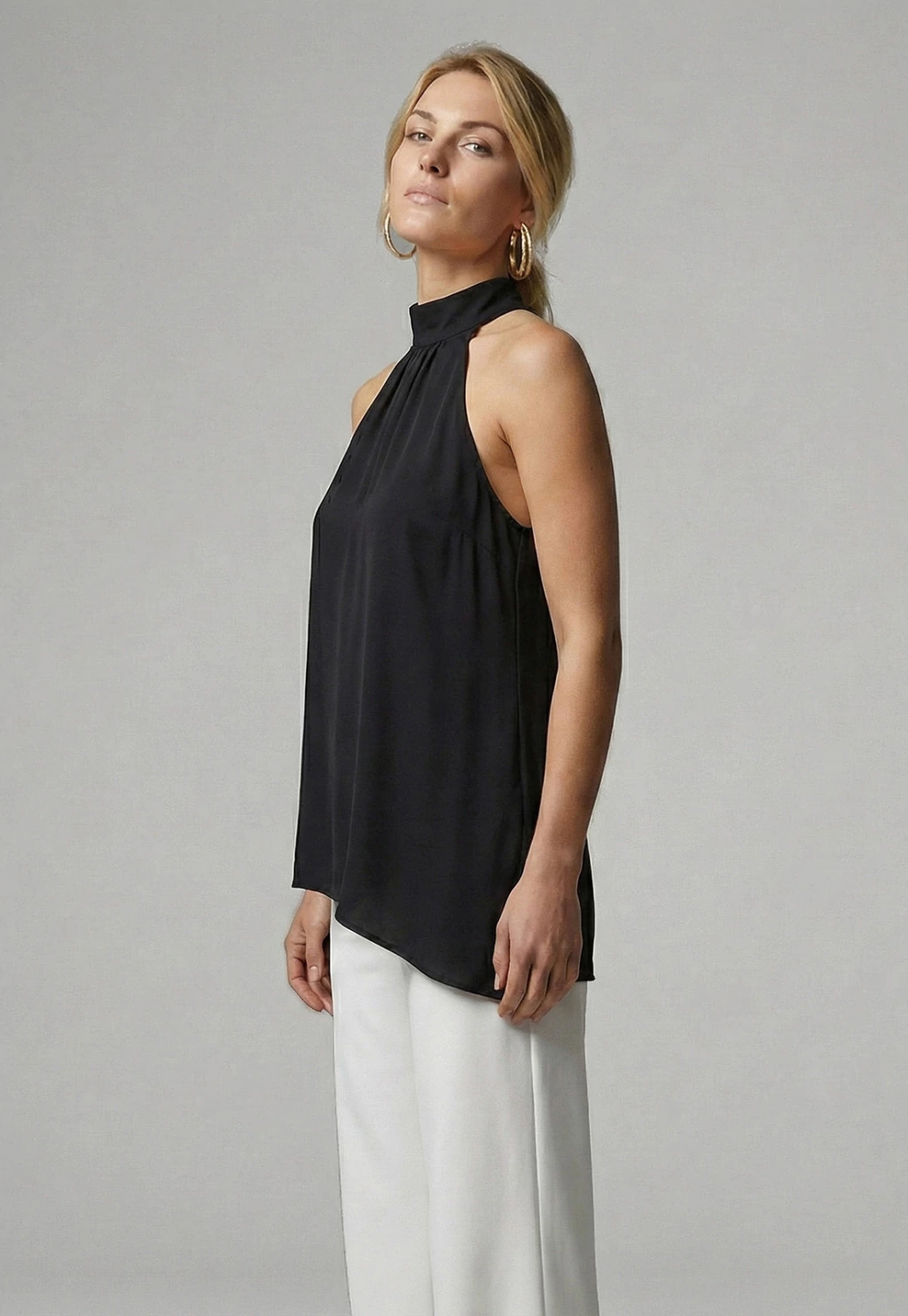 Blusa Bisô Crepe Assimétrica Preta.