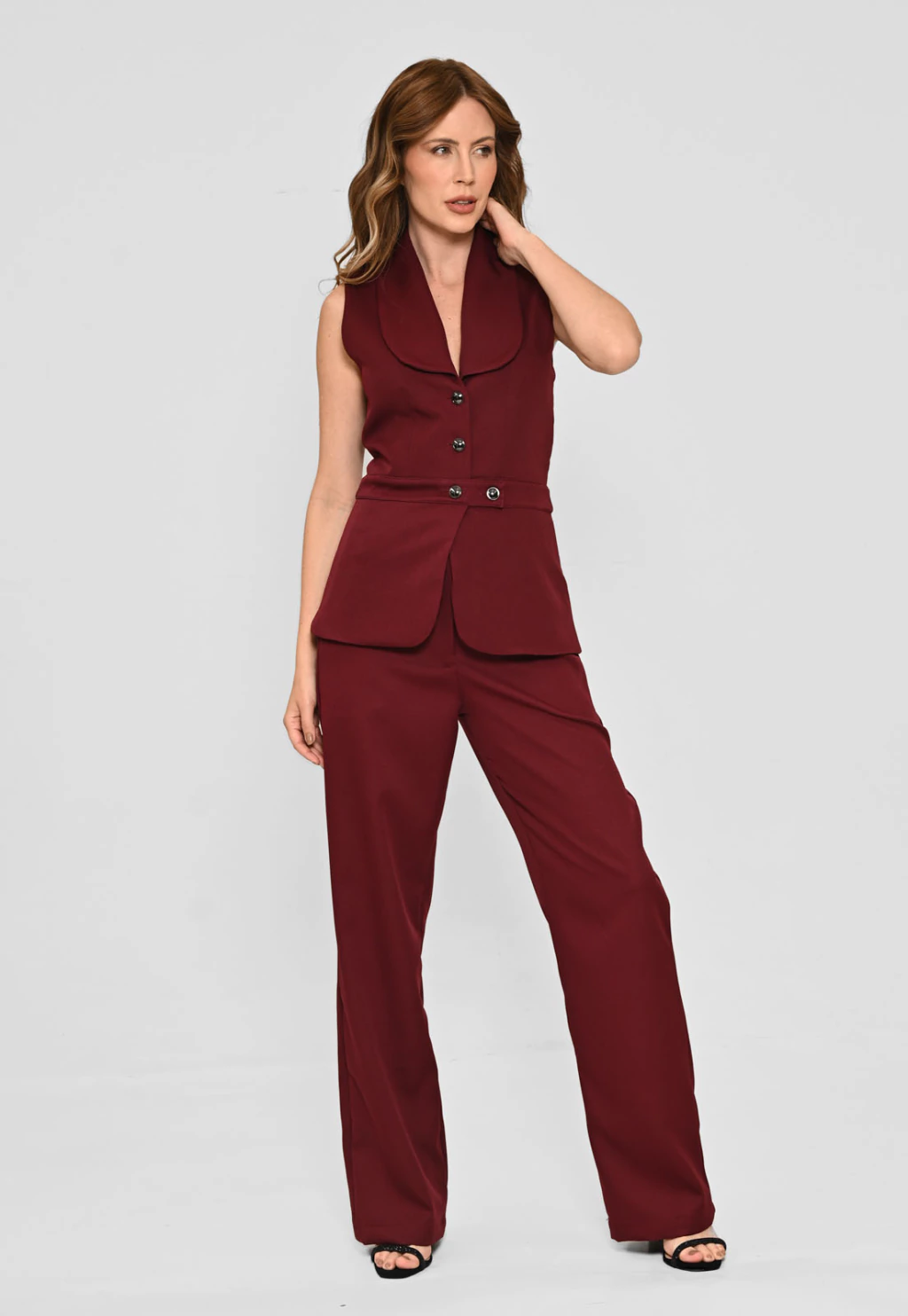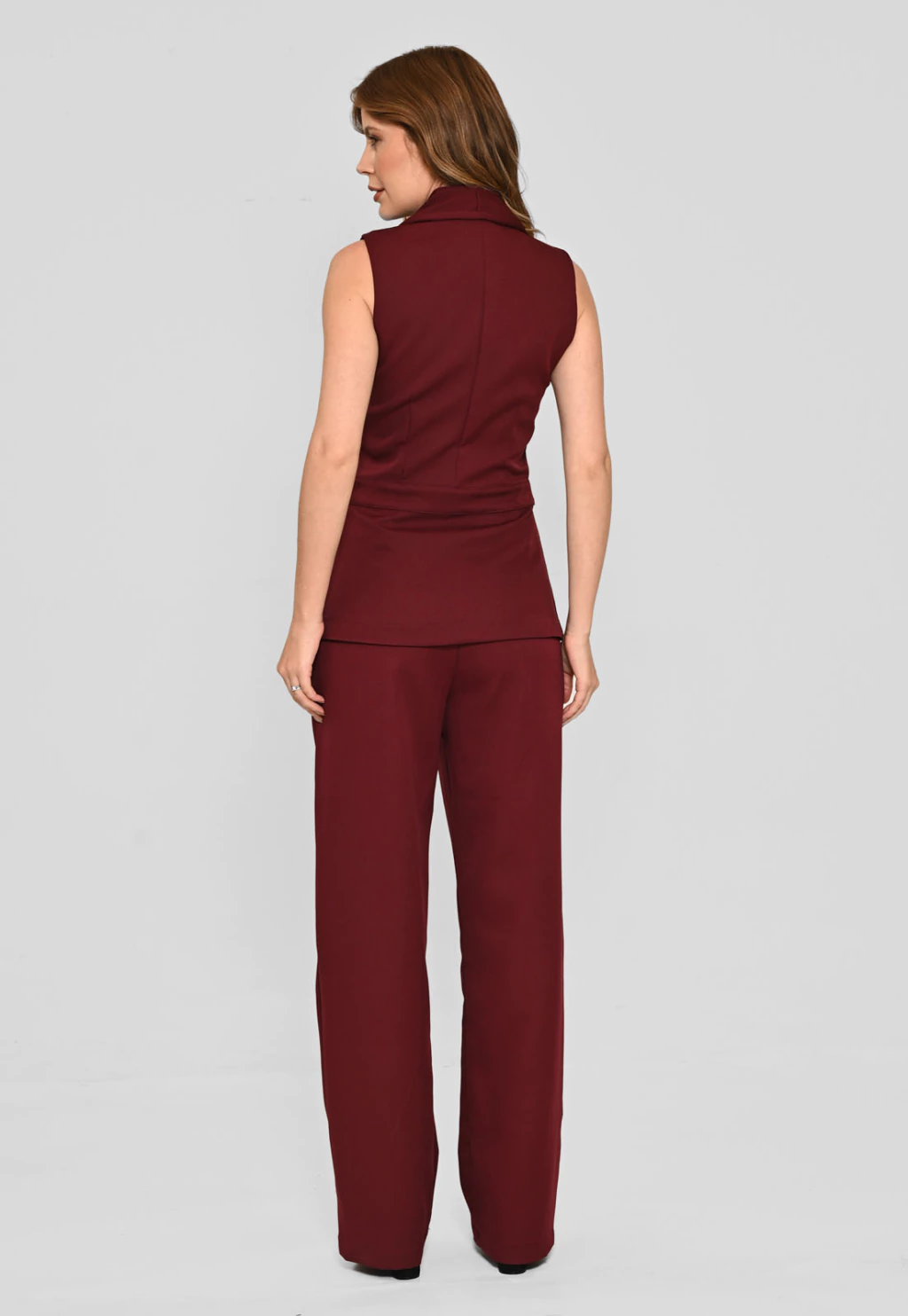 Colete Bisô Alfaiataria Alongado Vinho. Peça sofisticada confeccionada em alfaiataria lisa encorpada, colete duplo alongado com gola e botões. Use como blusa ou terceira peça e arrase nos looks. Composição: 96% Poliéster 04% Elastano