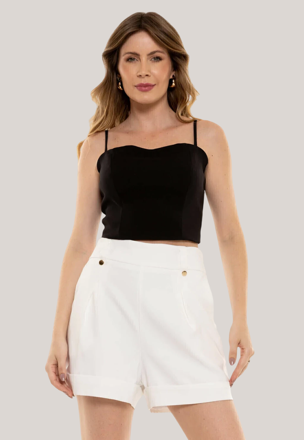 Cropped Bisô alfaiataria liso preto. Peça confeccionada tecido alfaiataria plano. Top duplo, alças ajustáveis, zíper e lastex. Peça linda. Composição: 96% Poliéste /04 % Elastano