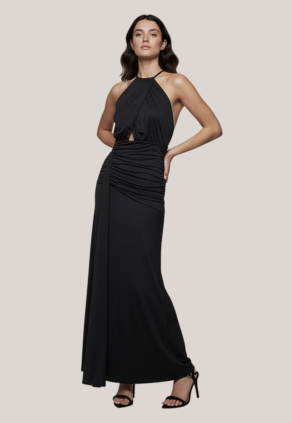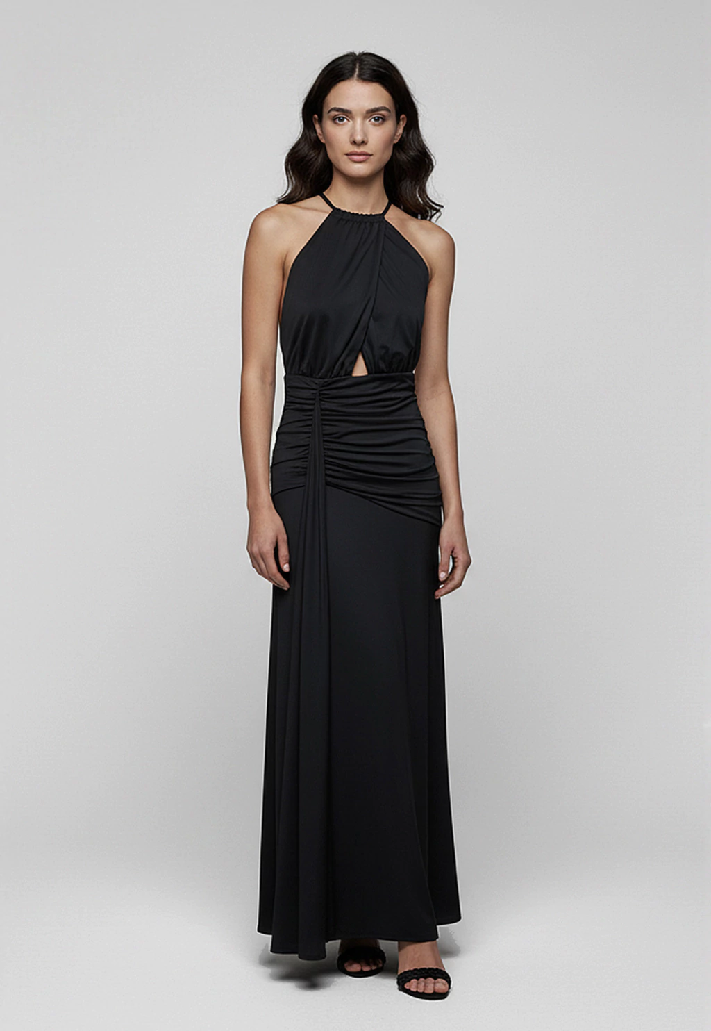 Vestido Bisô Festa Frente Única Longo Verde. Peça confeccionada em malha jersey com excelente fluidez, elasticidade e toque macio. Vestido todo forrado do mesmo tecido, decote drapeado, frente única com amarração no pecoço, drapeado e com caimento evasê. Chique e moderna pra você arrasar em seu evento. Composição: 90% Poliéster/ 10% Elastano